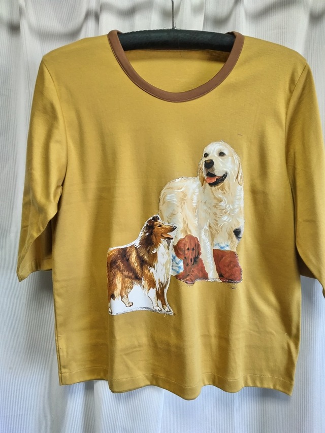 出来上がり寸法 Ⅼサイズ バスト106 着丈64 袖丈37 ■使用生地 木綿100% ■生地原産国 日本 アップリケ部分アメリカ ■洗濯は手洗いかネット