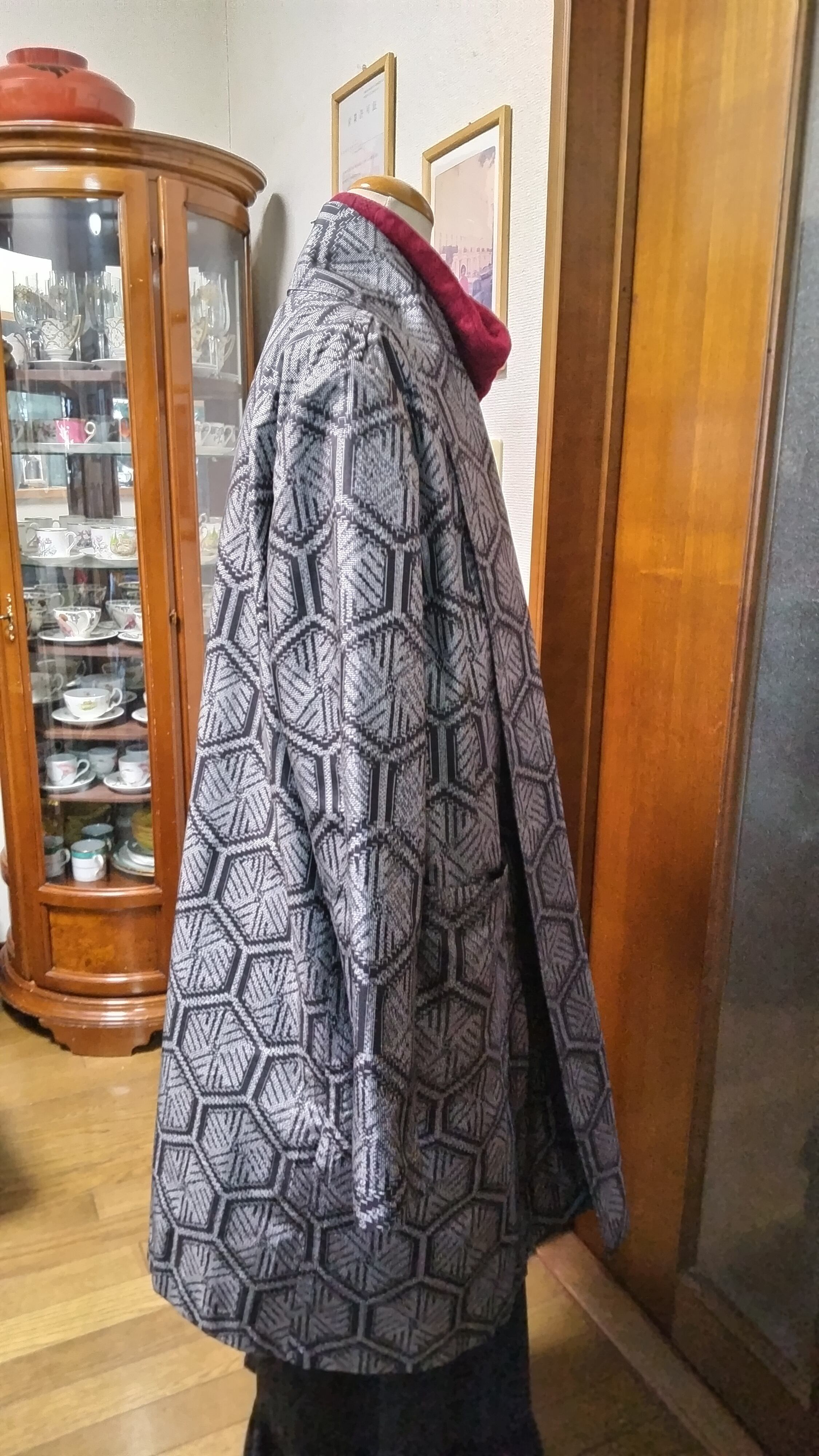 ■地味にな大島紬の一枚仕立てのコートはちょっと羽織って幅広くオシヤレにお召しなれます