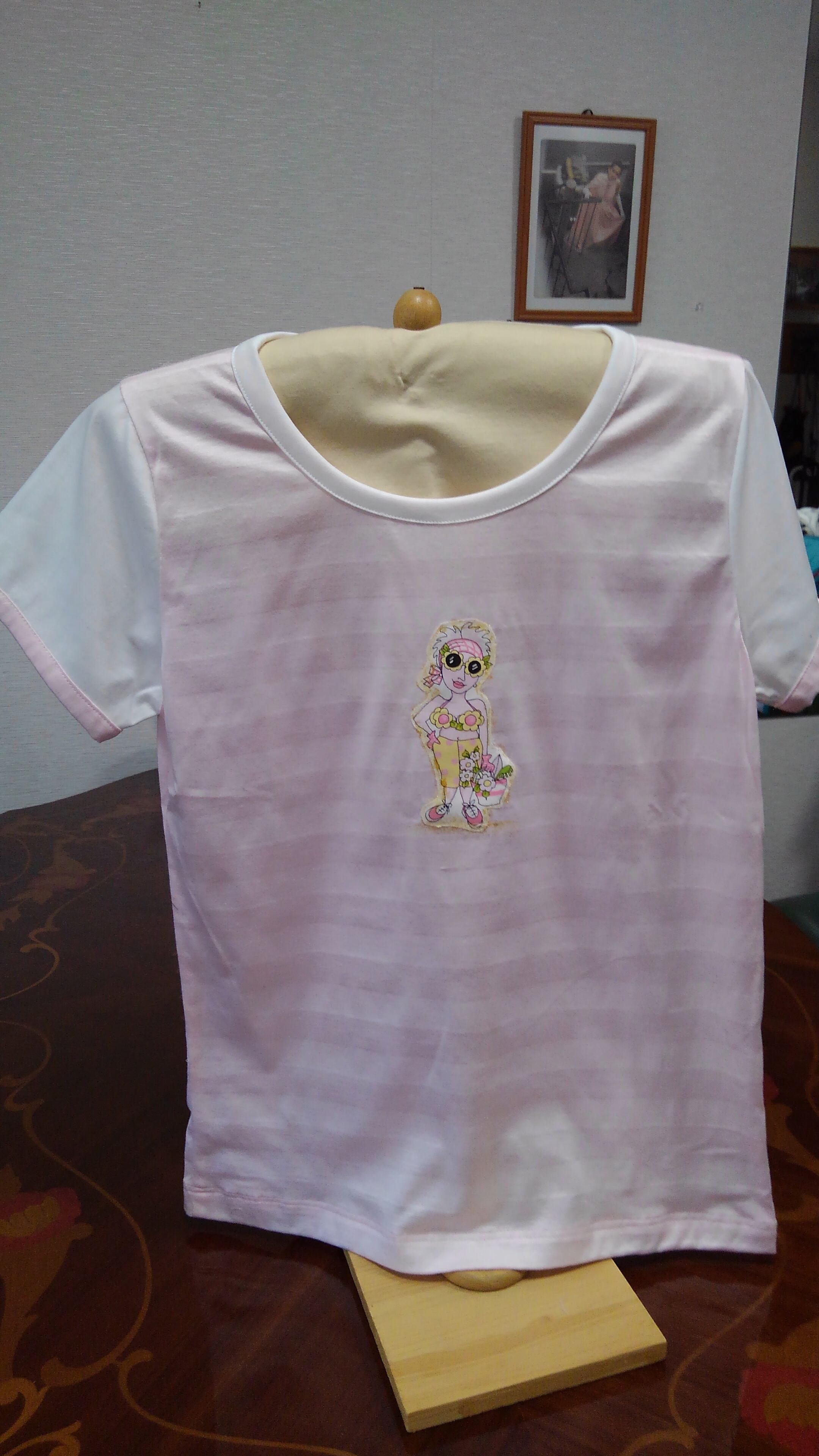 ■【出来上り寸法 バスト92 着丈60 袖丈16 ■使用生地 木綿100% ■生地原産地 日本 アップリケ部分アメリカ ■洗濯はネットか手洗い