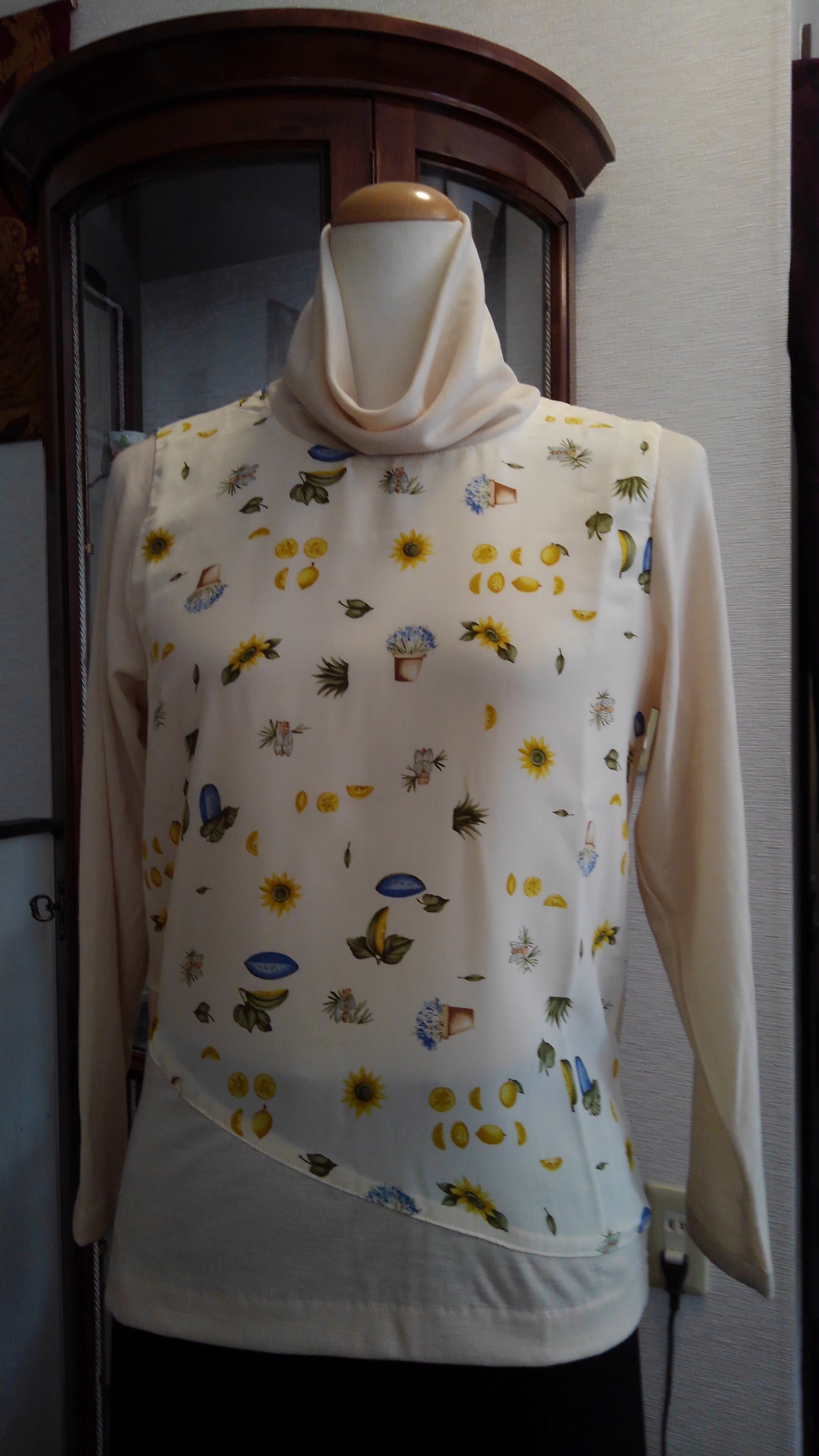 ■【出来上り寸法】Sサイズ バスト88 着丈 57 袖丈 53 ■使用生地 毛100% プリント部分絹100% ■生地原産国 イタリア