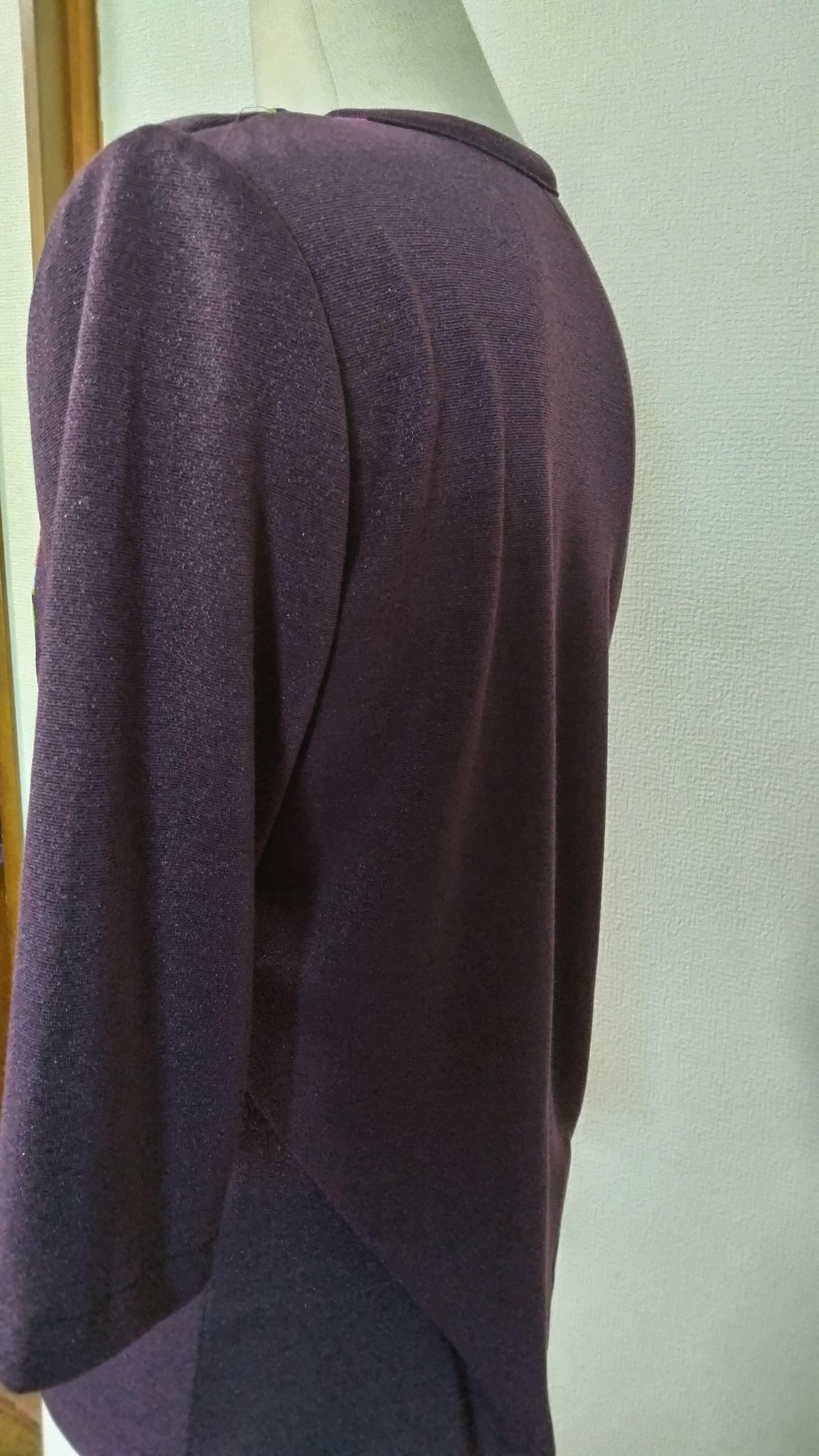 衿ぐりは小さなⅤネックに。深いいい色の紫はオシャレです。