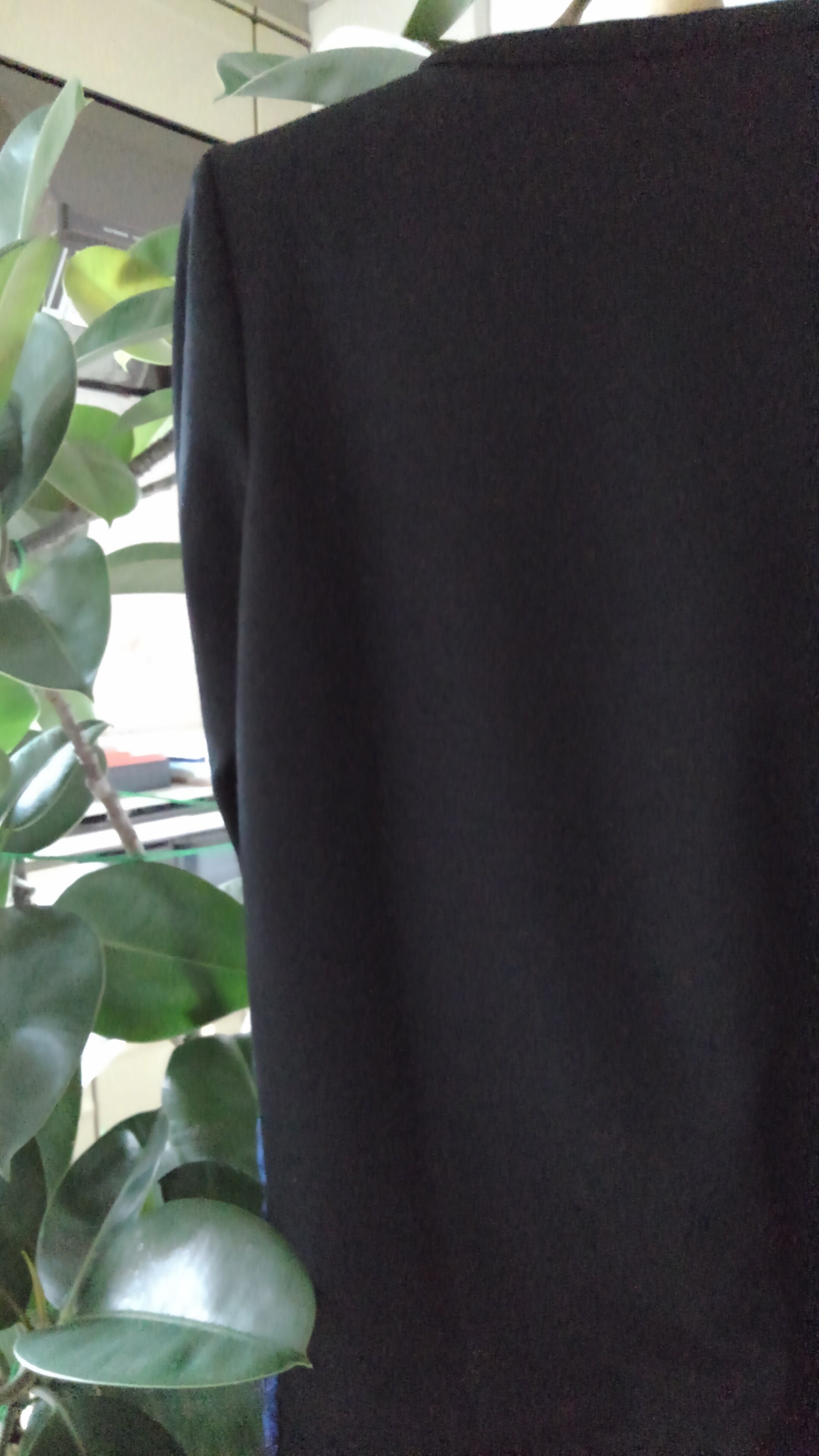 ■濃い紫の絹の生地はㇾ-ス風のプリントです。後ろ身頃は厚手の毛100%のジャージ-なので圧迫感なく着ることができます。