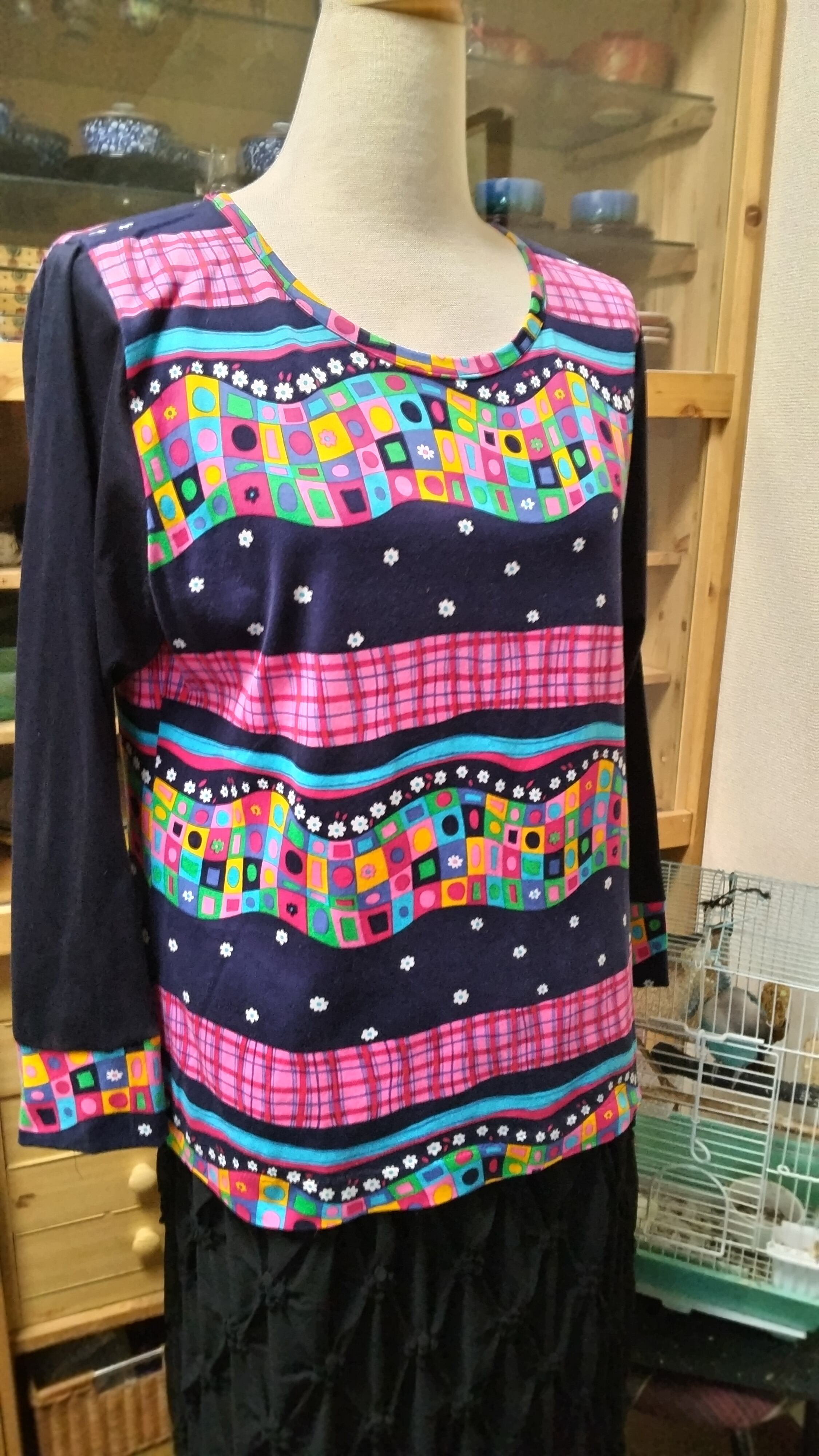 出来上がり寸法 MLサイズ バスト96 着丈60 袖丈25 ■使用生地 木綿100% ■生地原産国 イタリア ■洗濯はネットか手洗い