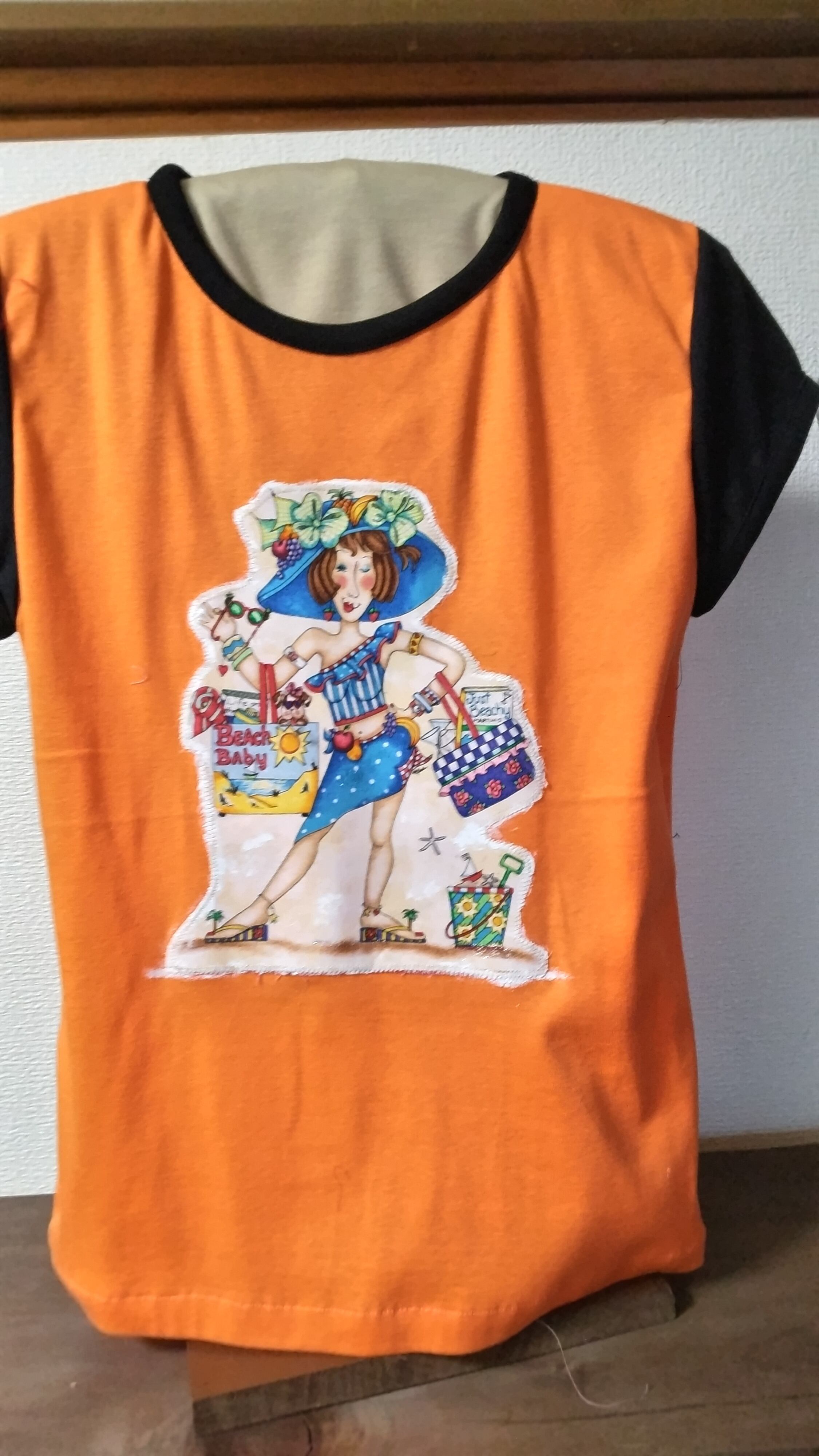 出来上がり寸法 Ⅿサイズ バスト84 着丈58 袖丈10 ■使用生地 木綿100% ■生地原産国 日本 (アップリケはアメリカ) ■洗濯はネットか手洗い