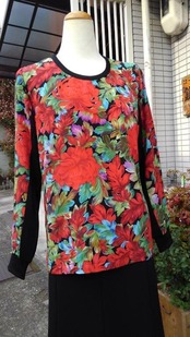 出来上がり寸法 バスト102 着丈63 袖丈58 ■使用生地 毛100% プリント部分絹100% ■生地原産国 イタリア ■ドライクリーニング■ブリッジ不可
