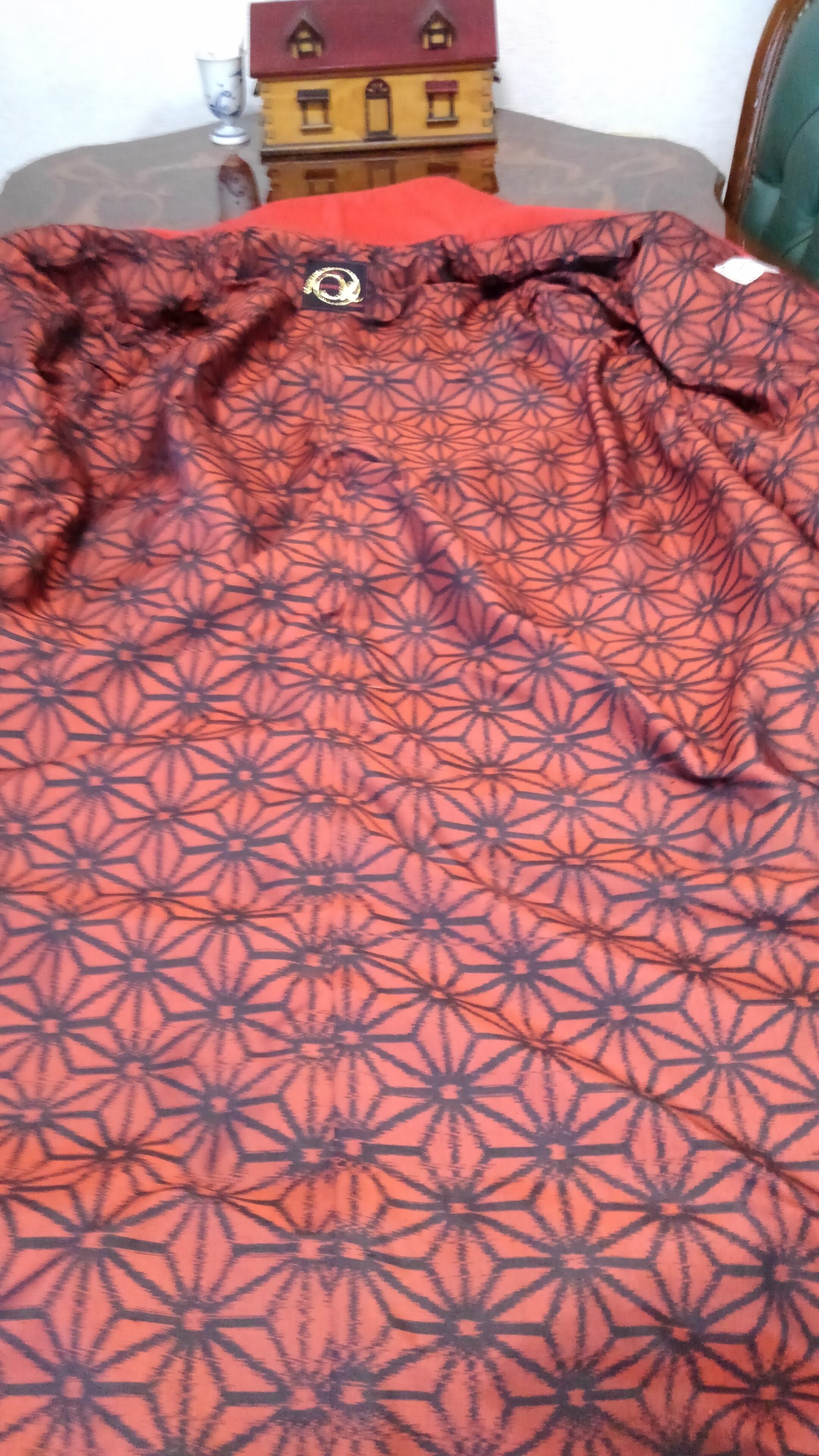 裏地には黄八丈の麻の葉模様の和服生地です。