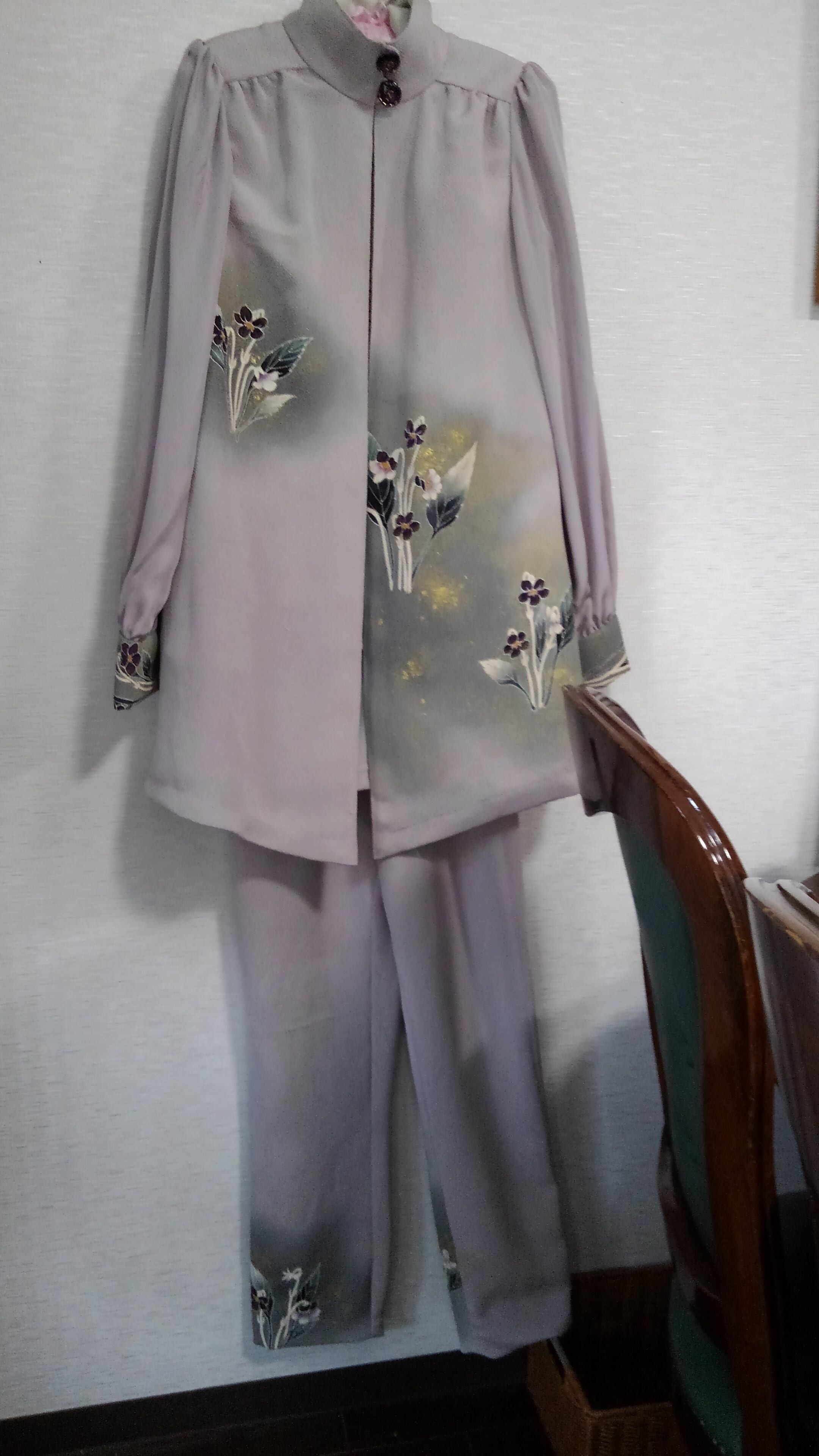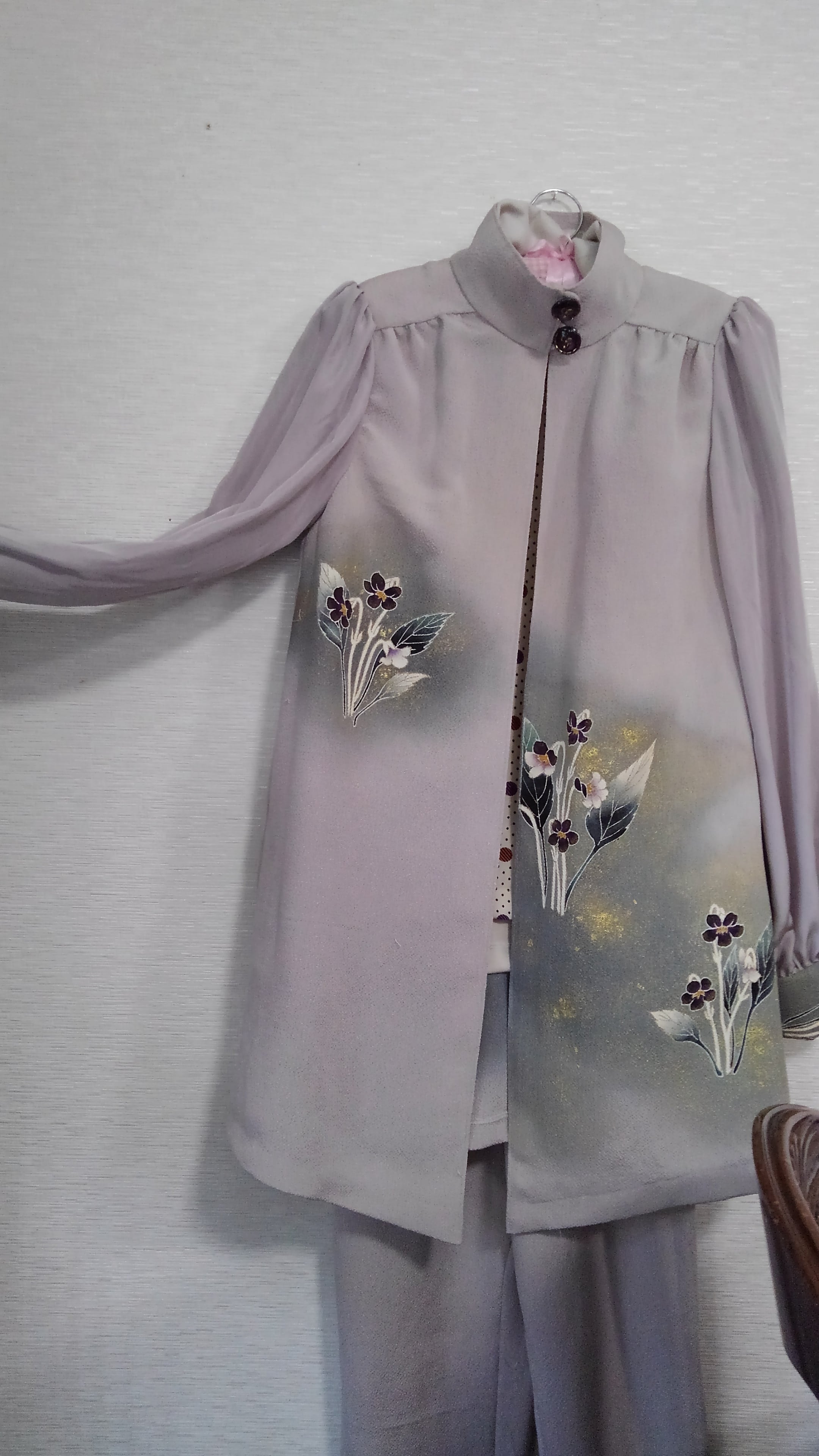 ■鬼ちりめんの着物生地。菫の花を生かしてデザインしました。