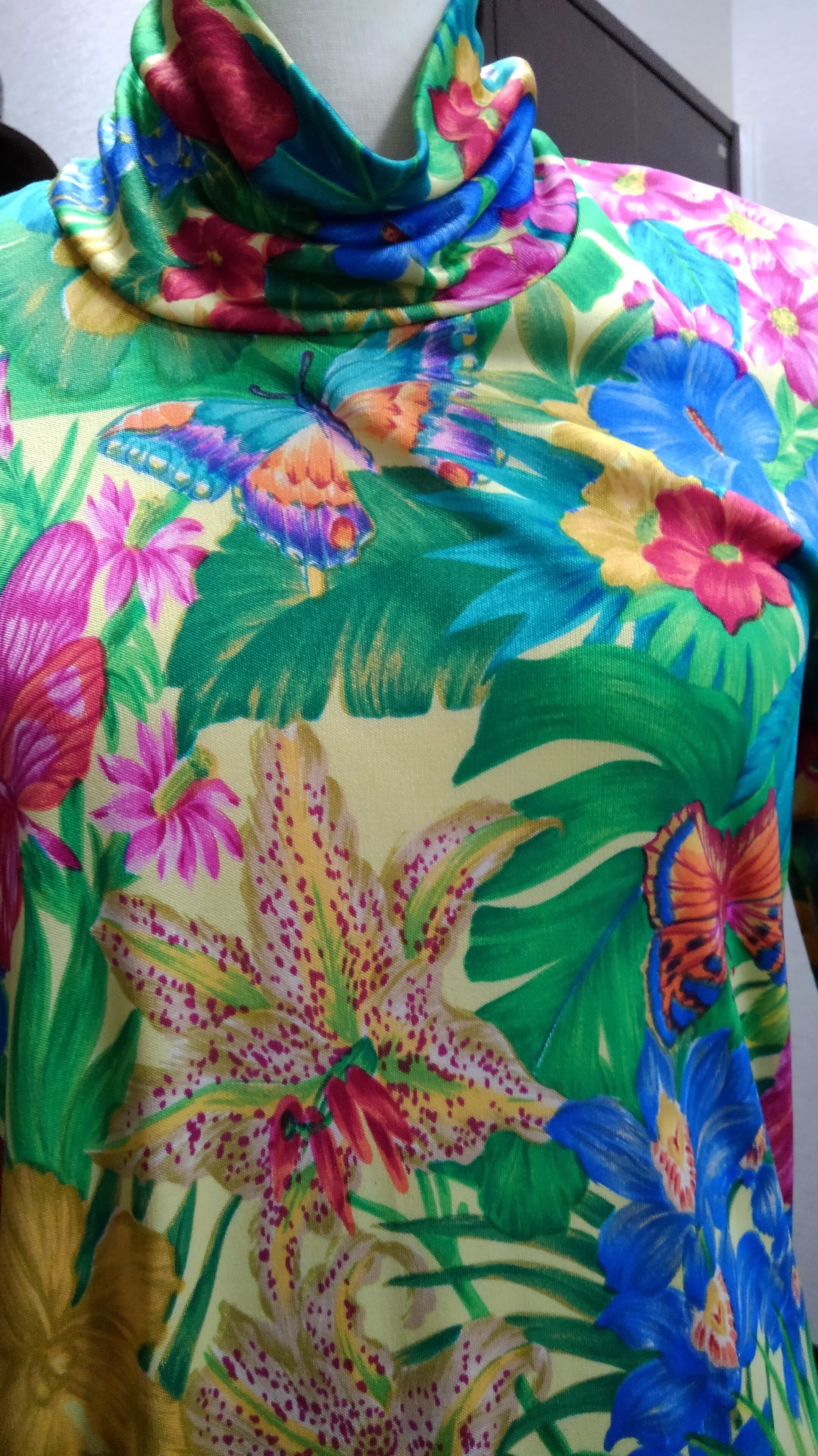 華やかなシルクジャージのロングブラウスは着心地は最高の肌触り