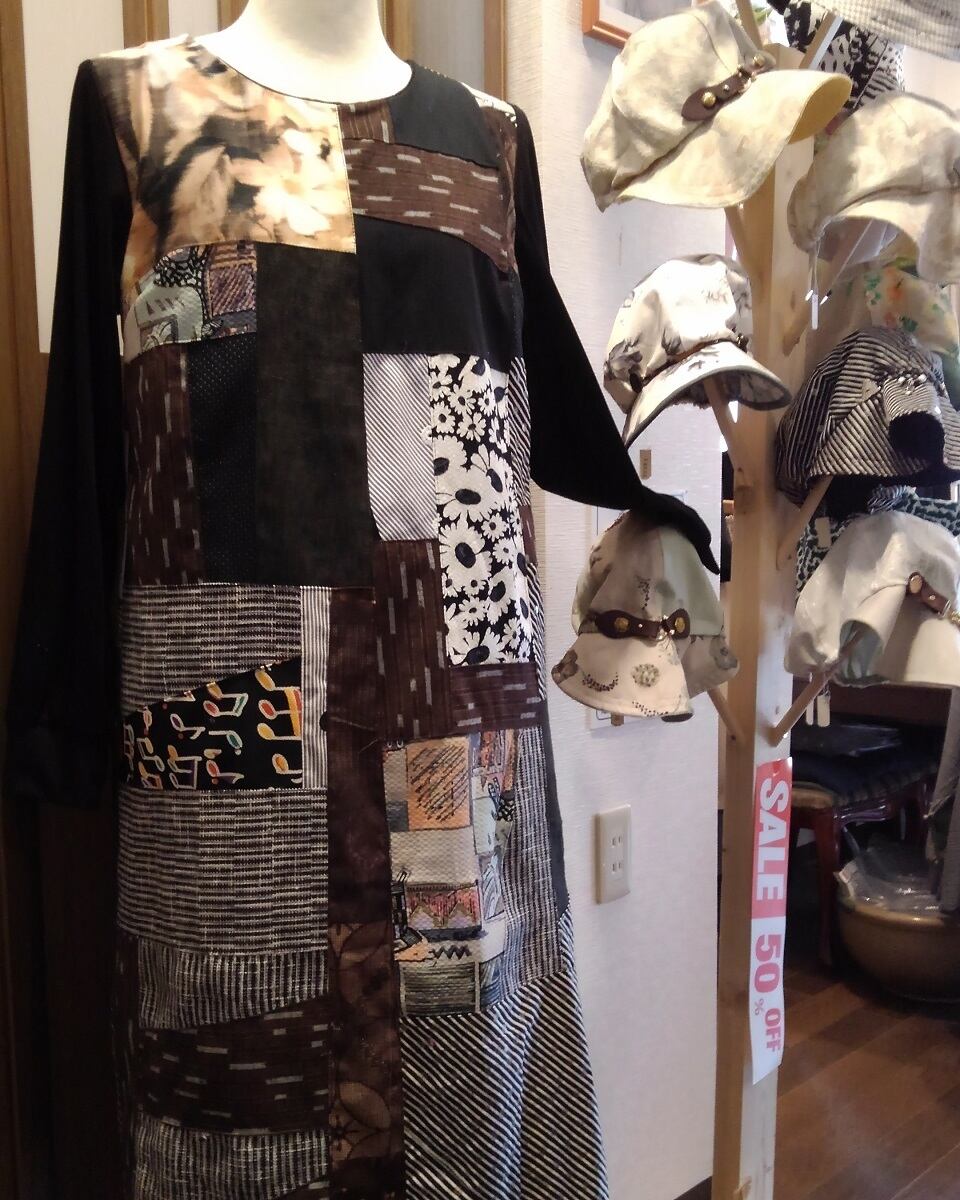 ■木綿100%厚手のめずらしい茶系統の生地をパッチワークしました。