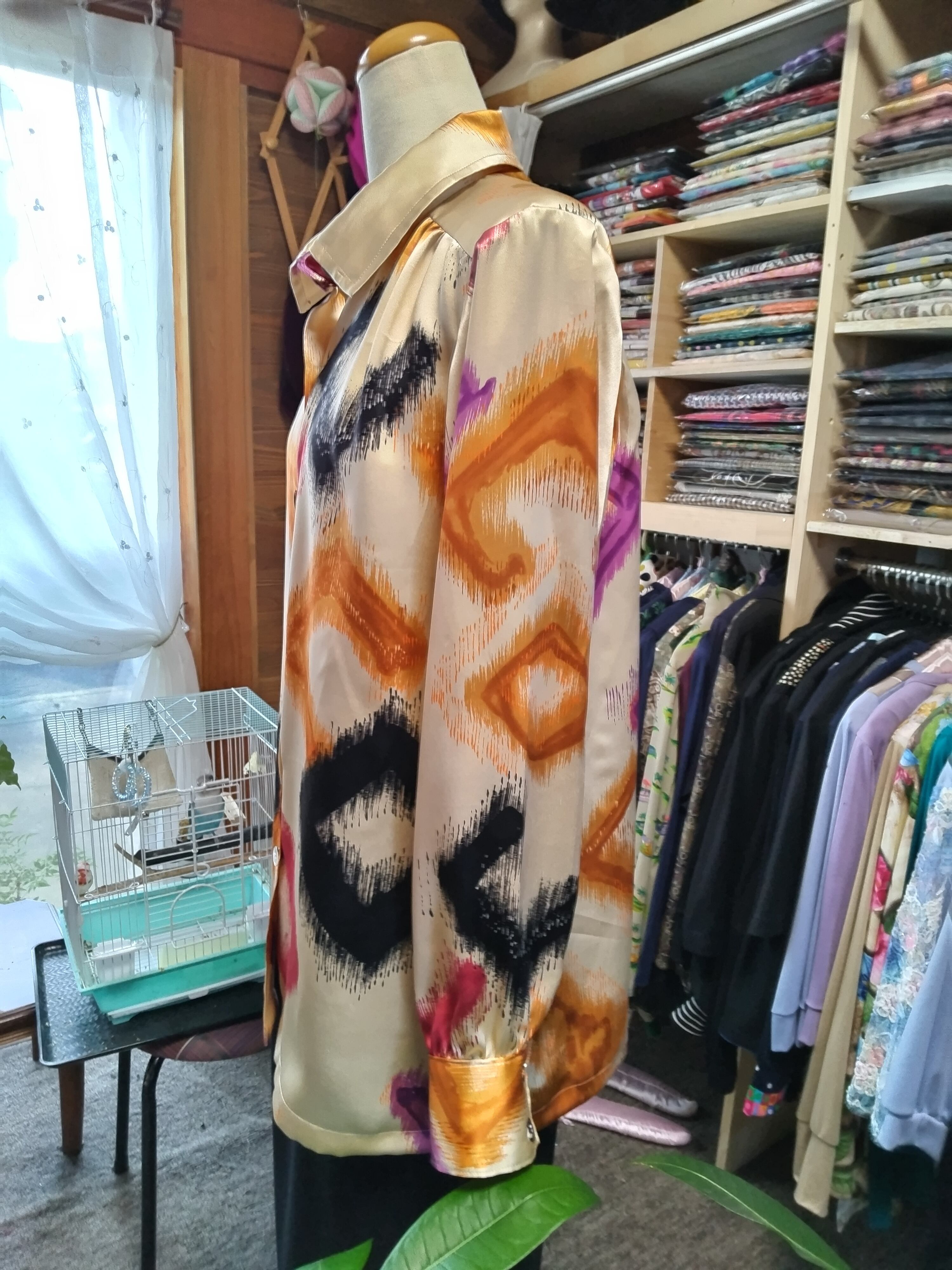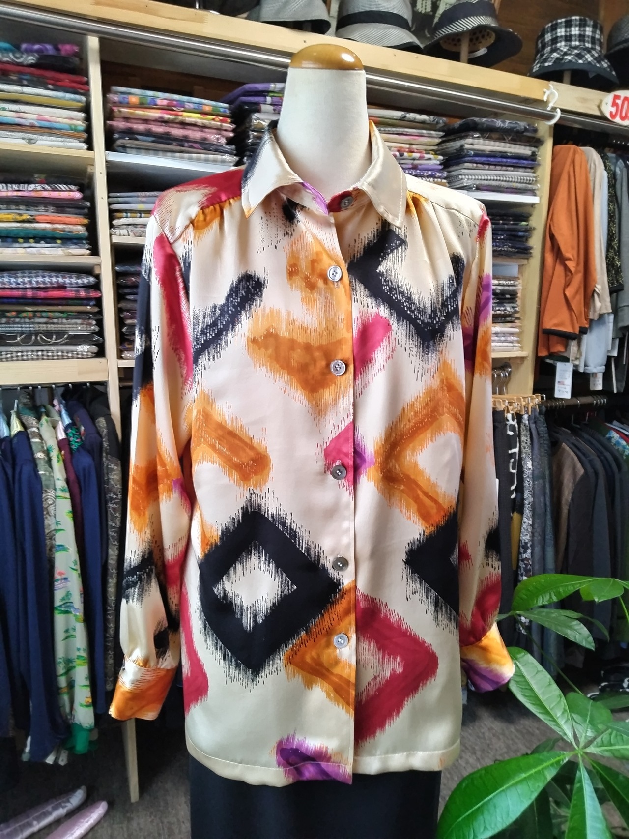 絹100%のゆったりしたシヤツ。オシヤレな方の着こなしがとても楽しみ。