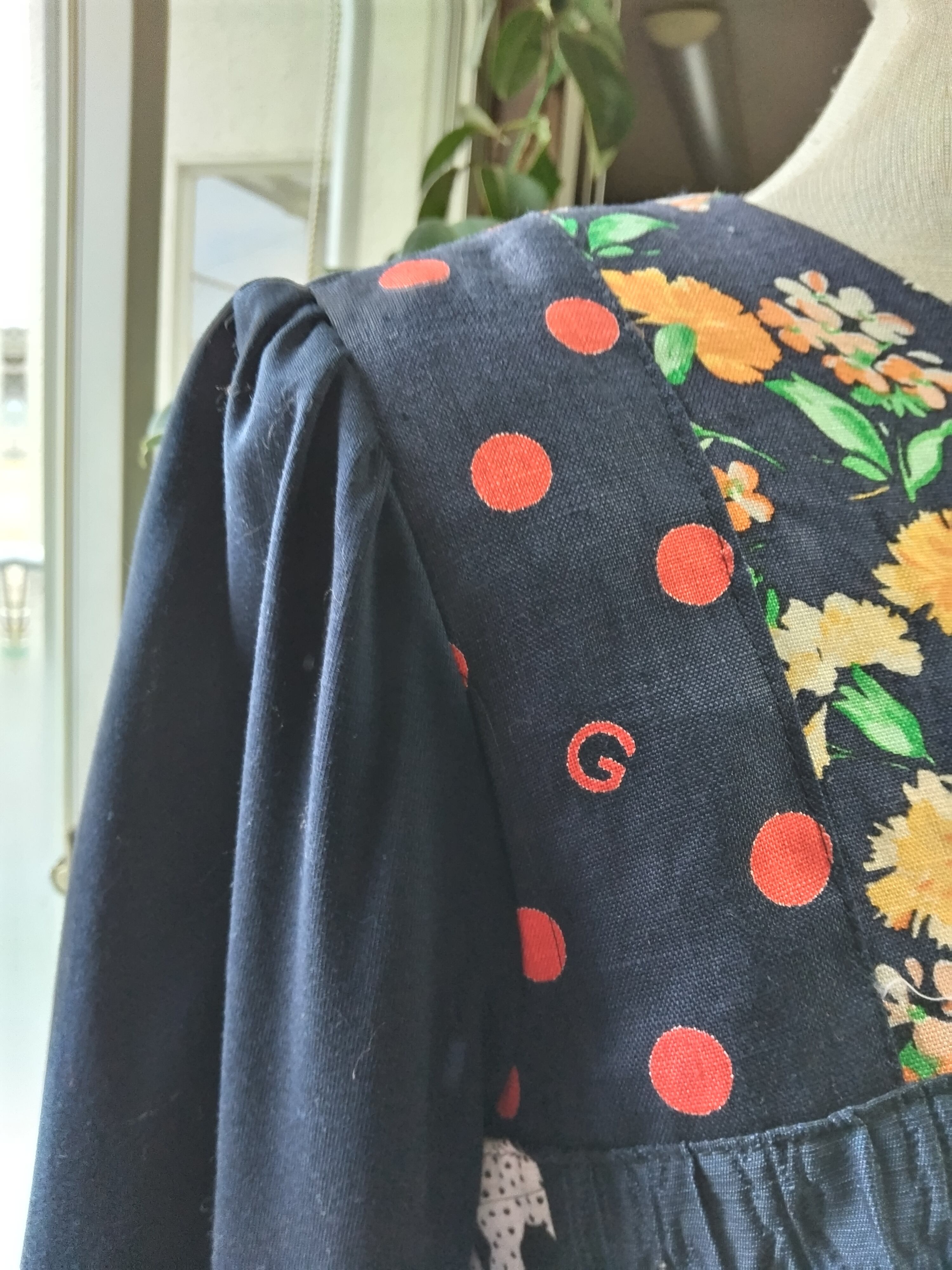 ■GIVENCHY®やエレガンス®の生地を使用したパッチワークのワンピース。
