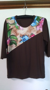 上質な木綿100%のジヤ-ジイを使用して仕立て上げたブラウスのようなTシヤツ一点物のオシヤレを。
