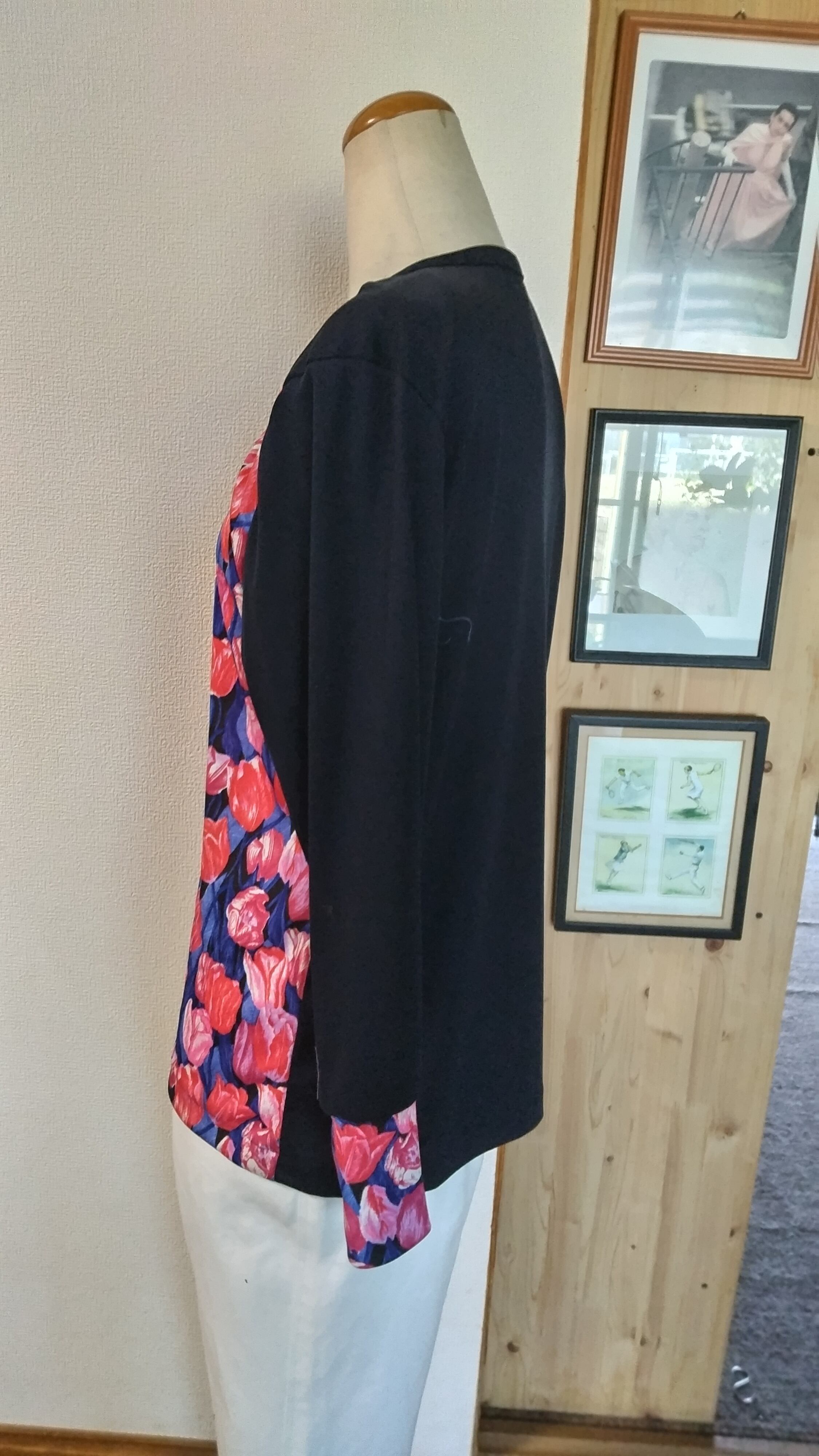 上質な木綿100%のジヤ-ジイにサラッとしたポリエステル100%のプリントを組み合わせ