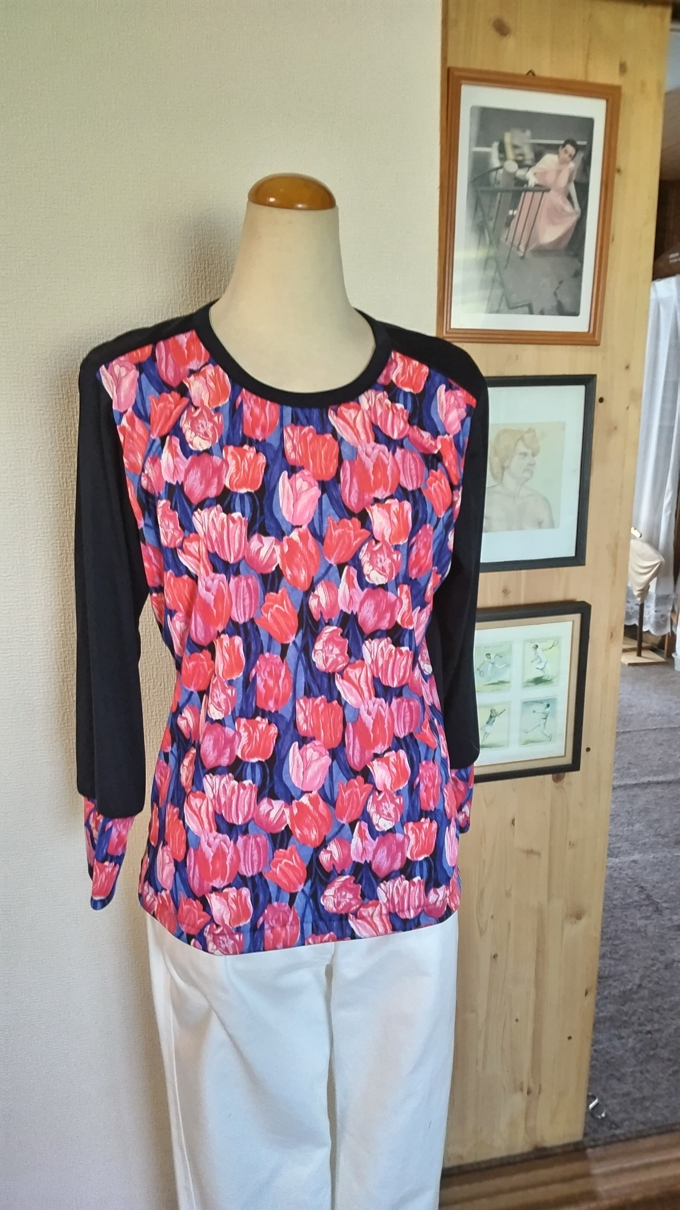 ブラウスの様なTシヤツはオシヤレに御召に。