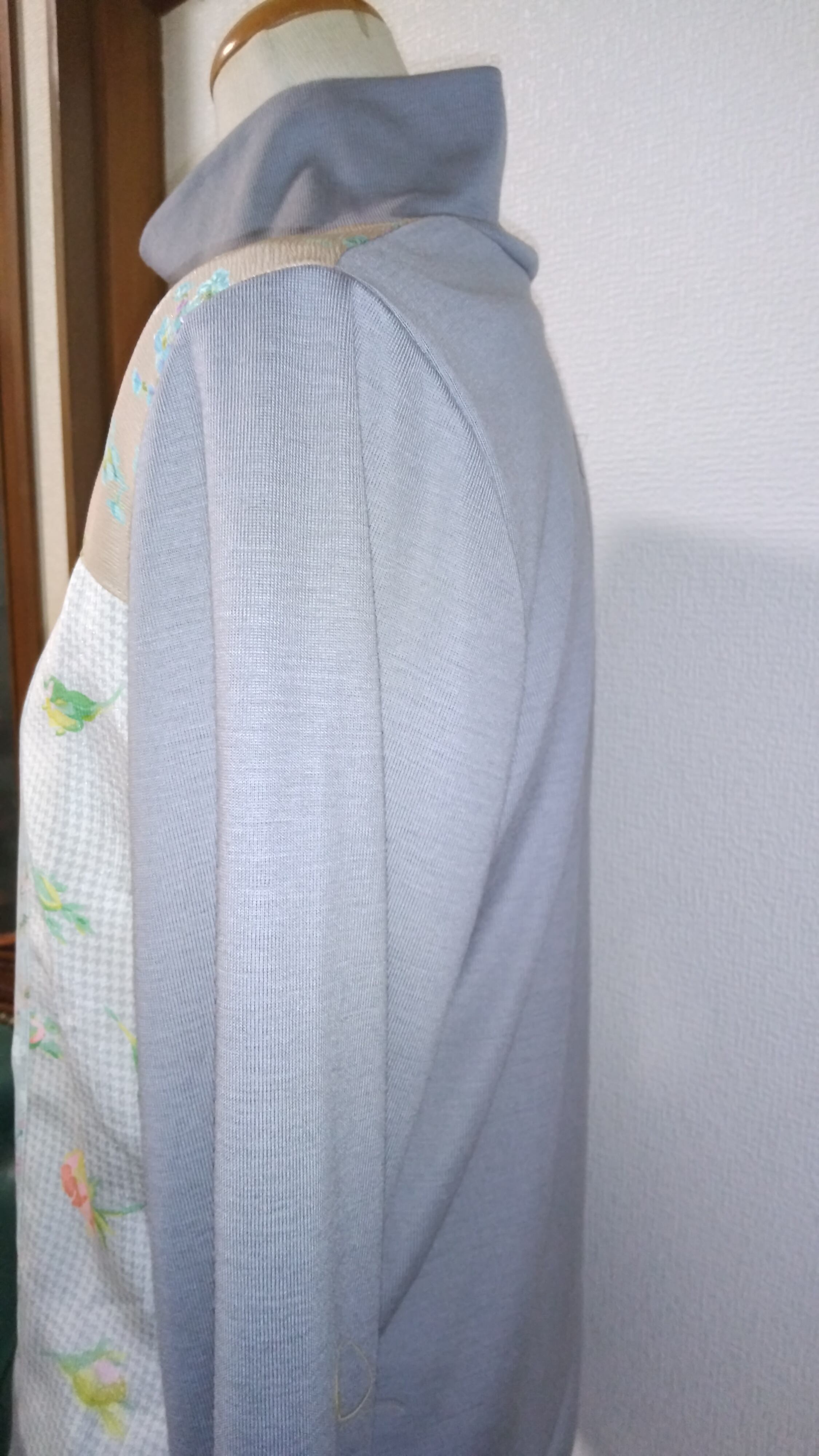 出来上がり寸法 バスト90 着丈57 袖丈55 襟の高さ9 ■使用生地 毛100% プリント部分絹100% ■生地原産国 イタリア ■洗濯はドライクリーニング